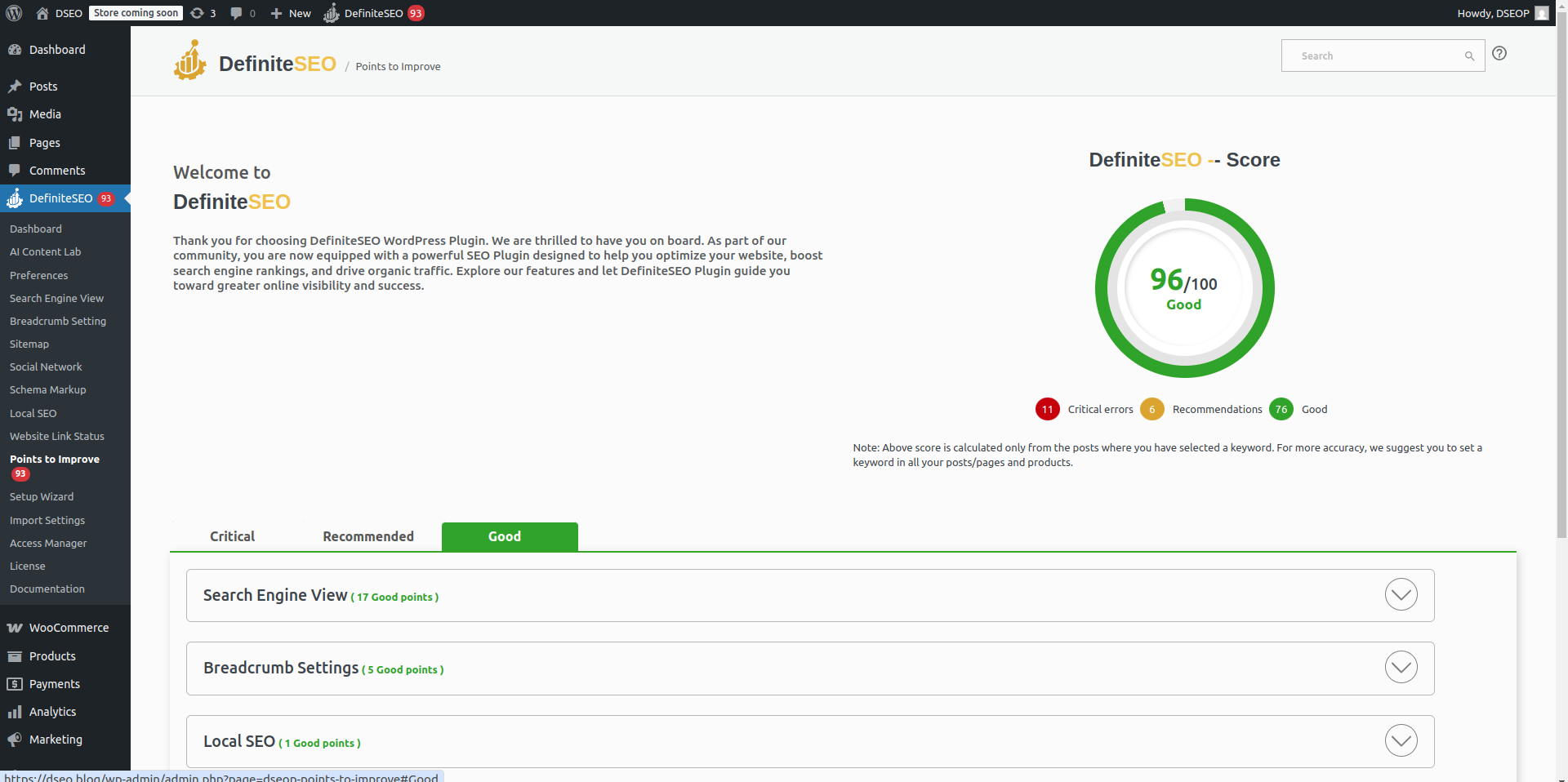 - Separated the Points to Improve suggestions for Posts, Pages, and Products.