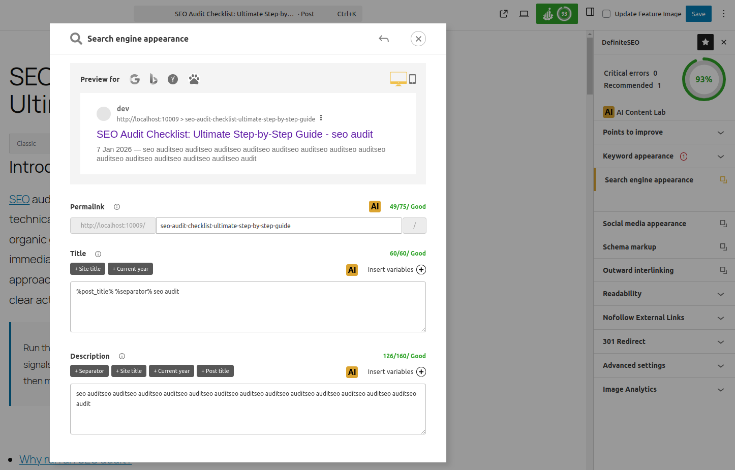 AI SEO Plugin features