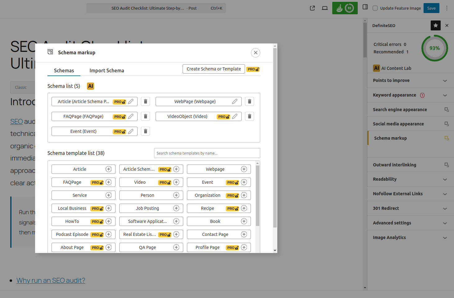 DefiniteSEO is an AI-powered WordPress SEO plugin designed to handle both traditional SEO and modern AI search optimization. Unlike basic SEO plugins, it combines AI content writing, automated SEO audits, schema markup, keyword optimization, image SEO, XML sitemaps, and redirection management in a single, modular interface, making it suitable for beginners and advanced SEO professionals alike.