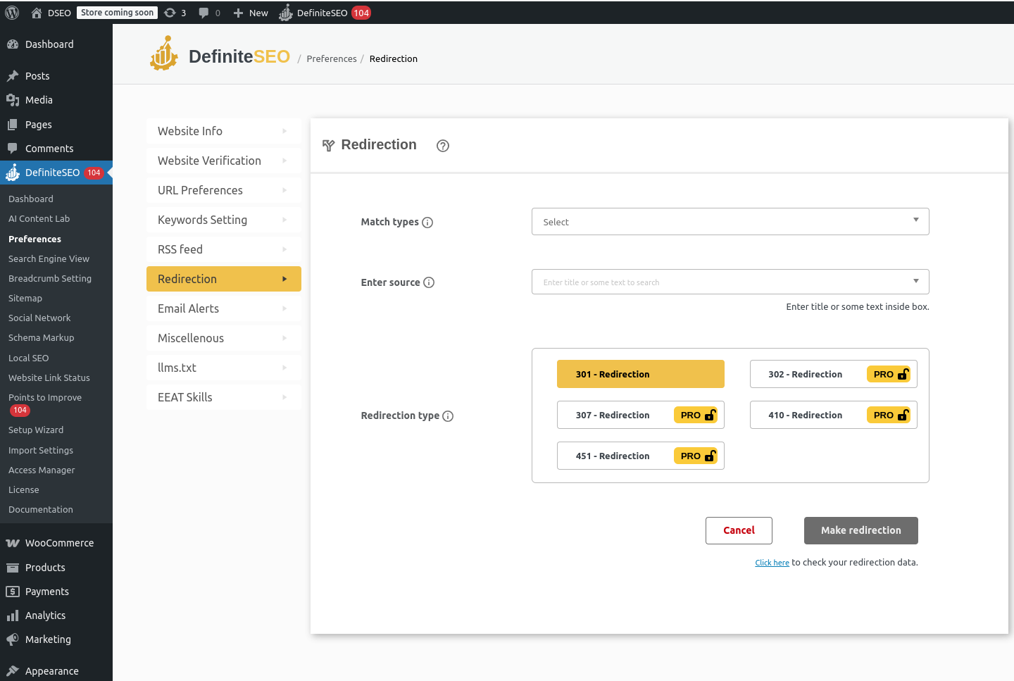 Redirection option for better SEO